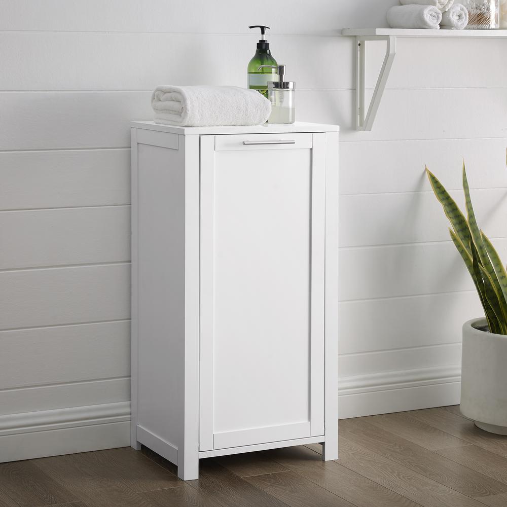 Keep laundry out of sight with the sleek Savannah Linen Hamper. The hamper's clever pull-down design makes it ideal for small spaces like a bathroom or laundry area. Storing and moving your laundry is a breeze with this hamper's removable cloth bag. Lovely Shaker-style recessed panels and a transitional design give the Savannah Linen Hamper a style that coordinates with a variety of decor.