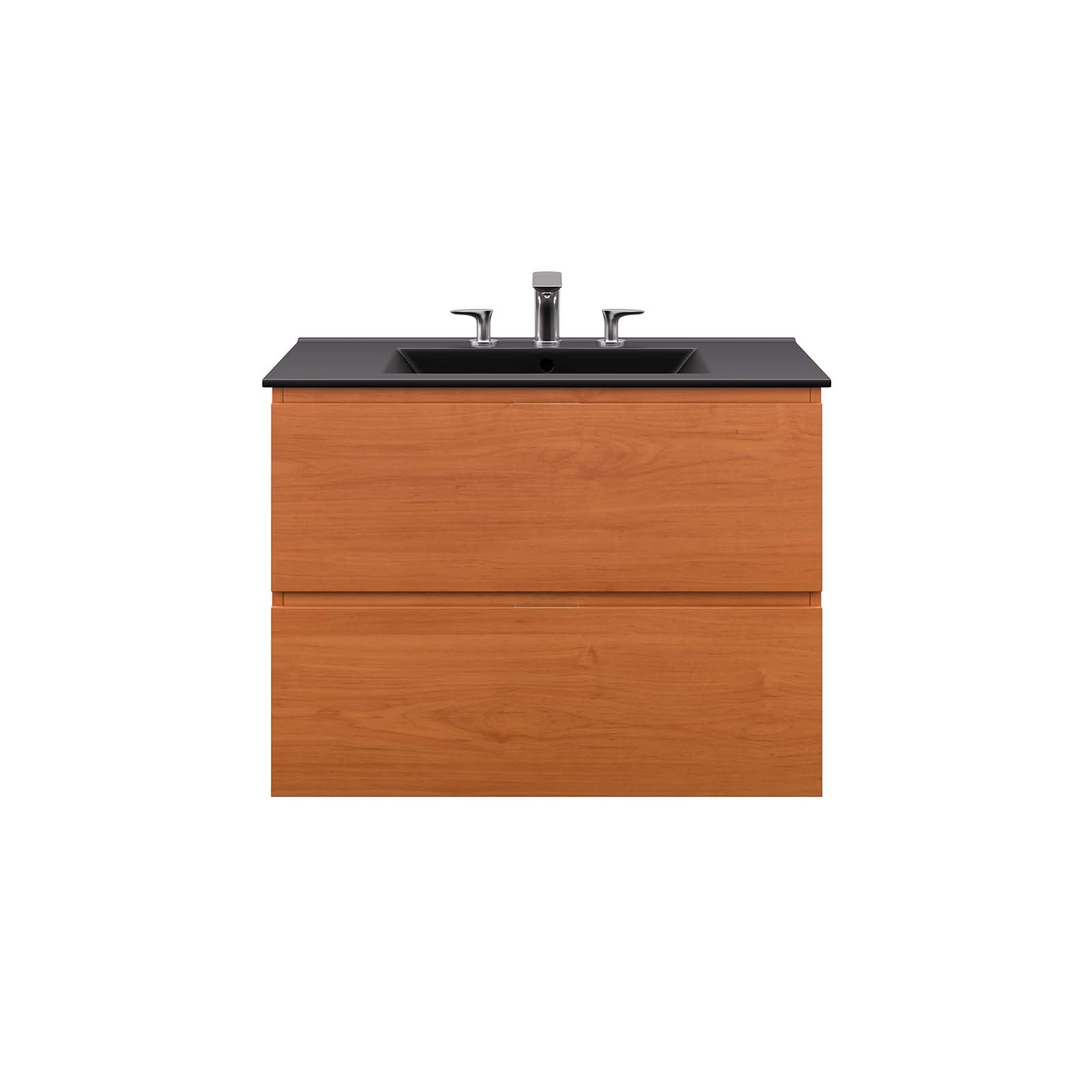 Streamlined design takes center stage in your bathroom with the Scenic 30" Wall-Mount Bathroom Vanity Cabinet. Boasting clean lines and modern style, this bathroom vanity is crafted with melamine and features a beautiful wood grain finish that incorporates natural aesthetics. This vanity is a complete addition to the bathroom with a ceramic sink basin with an integrated countertop and 8" centerset holes. Mounting directly to the wall with a drywall-friendly metal cleat, this vanity cabinet offers ample storage space for bathroom essentials in two full-extension drawers. Fixtures not included. Assembly required. Set Includes: One - Scenic 30" Wall-Mount Bathroom Vanity