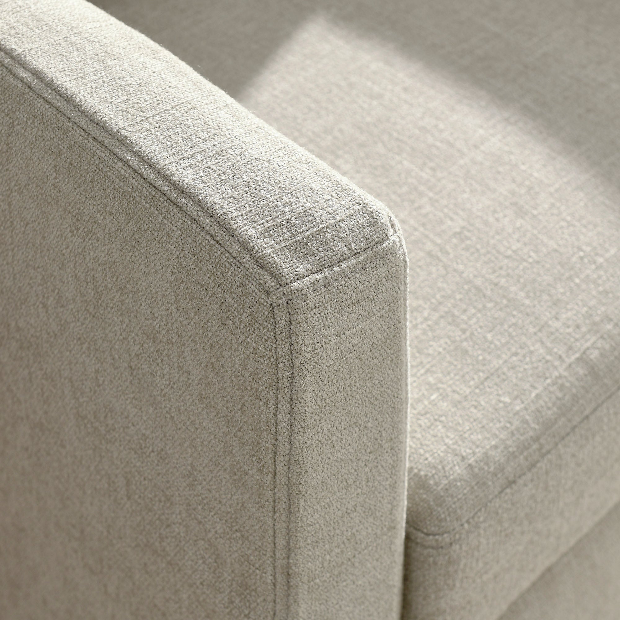 The Serene Slipcovered Swivel Armchair seamlessly combines modern elegance with superior comfort. Upholstered in premium linen, this fabric upholstered accent chair features a removable, washable slipcover, making cleaning and maintenance a breeze. The swivel chairÕs crisp lines and tailored profile enhance any decor style, fitting well in both home and office environments. Enjoy a smooth 360-degree swivel with this modern linen fabric chair, supported by a robust yet discreet iron base with non-marking floor glides to protect your floors. Dense foam padding and removable cushions provide luxurious comfort and support. Perfect as a stylish accent piece, this linen fabric armchair is a versatile and functional addition to any space in your home. Whether used as an accent chair for bedroom or swivel chair for living room, it showcases a chic and modern look with its linen upholstery and generous cushioning. Assembly required. Weight Capacity: 330 lbs. One - Serene Linen Slipcovered Swivel Armchair