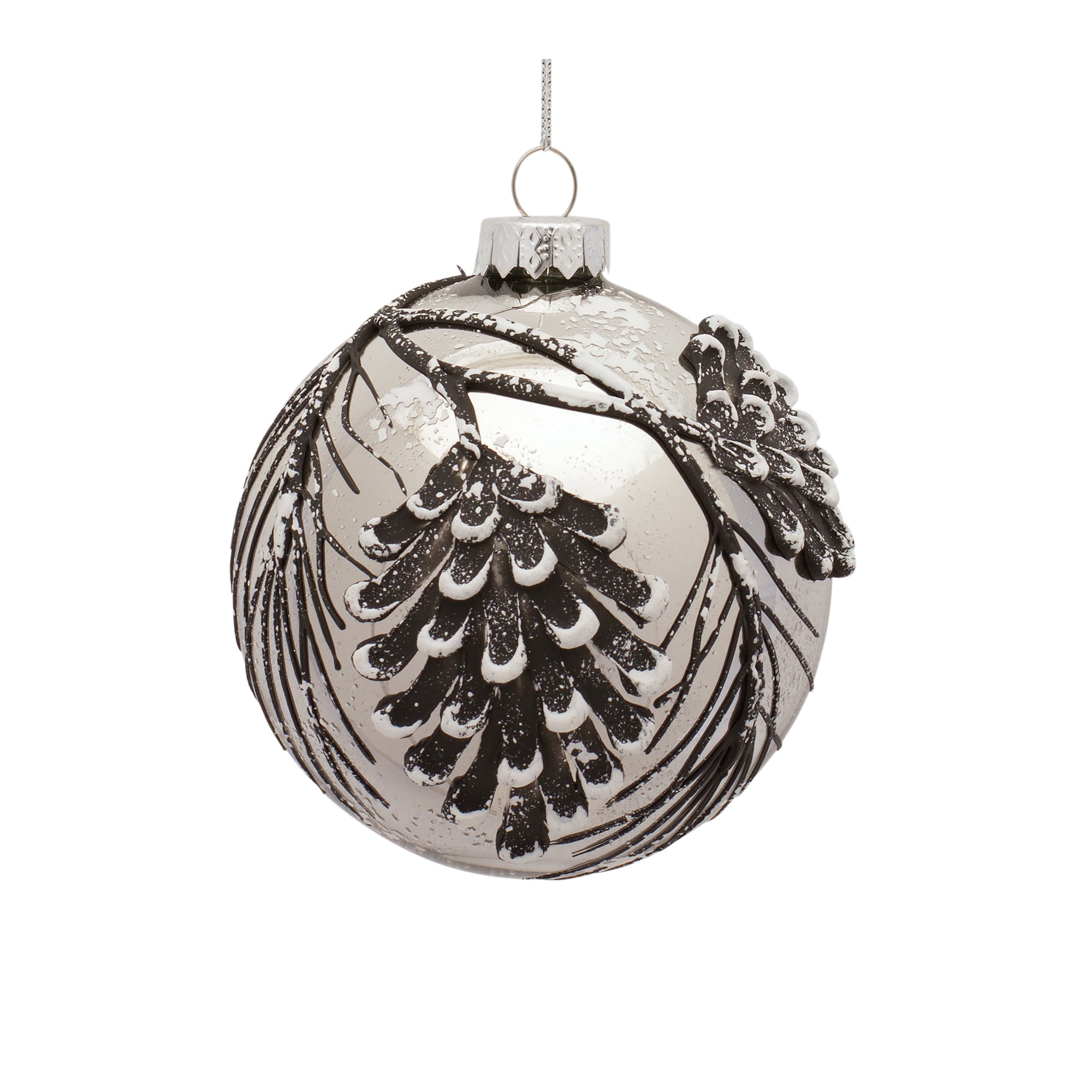 Adorn your Christmas Tree with this beautiful set of Pine Cone Ornaments. Featuring three assorted designs, the classic ball and onion ornament design paired with the chic silver finish with "snowy" pinecone accents makes this set the perfect addition to your holiday tree decor. The pieces can be used as gifts for friends to cherish, or you can display the set on your own Christmas tree and enjoy them for years to come., Ornament (Set of 6) 5"H, 5"H, 5.75"H Glass