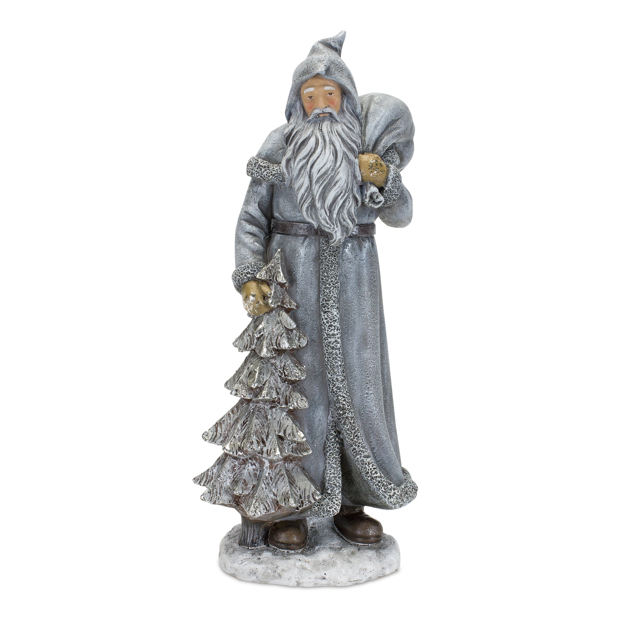 Ring in the holiday season with this beautiful set of Santa Figurines. Featuring two assorted designs, the rustic hooded Santa design paired with the pine tree and toy bag accents makes this piece a great addition to any style of holiday decor. The quality polyresin and stone powder composition is sure to last for seasons to come. Each measuring 13" tall, this set would be great for a floor display, or could be used to add height to a table arrangement., Santa (Set of 2) 12.5"H Resin