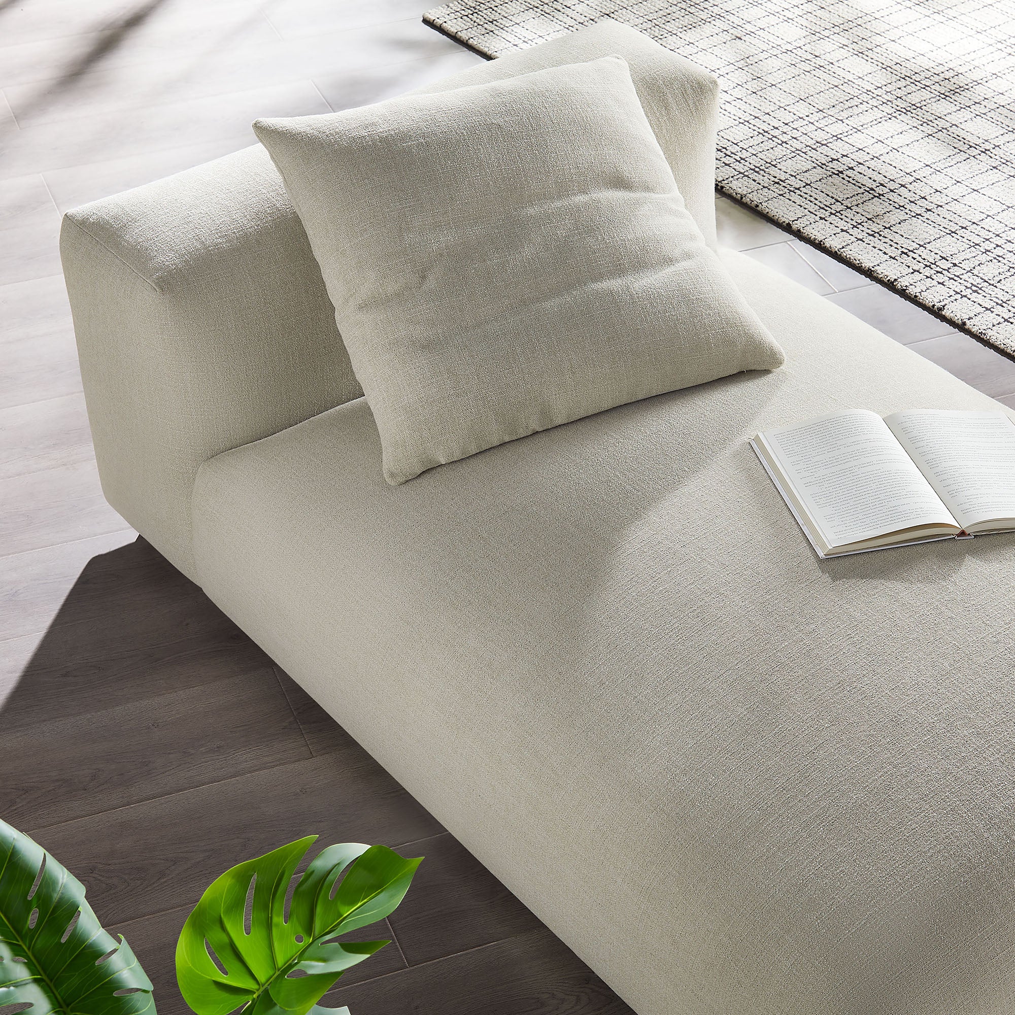 Revel in ultimate comfort and modern style with the Solace Modular Chaise Lounge Chair. This oversized chaise lounge is perfect for any living room or bedroom, offering endless flexibility. Its modular furniture design allows you to change the arrangement to suit the needs of the moment or expand your seating by adding more pieces in the future. Featuring a sturdy frame, dense foam padding, and a sinuous spring support system, the Solace Chaise Lounger grants a premium seating experience with it's soft textured woven fabric upholstery. The comfy upholstery adds a cozy, casual vibe, making this sofa chaise a perfect addition to any living space or lounge area. Equipped with non-marking plastic glides and a complementing accent pillow, this armless chaise lounge chair is both stylish and practical. With easy assembly required, you can enjoy immediate relaxation on this indoor chaise lounge. Weight Capacity: 500 lbs. One - Solace Modular Upholstered Fabric Armless Chaise Lounge