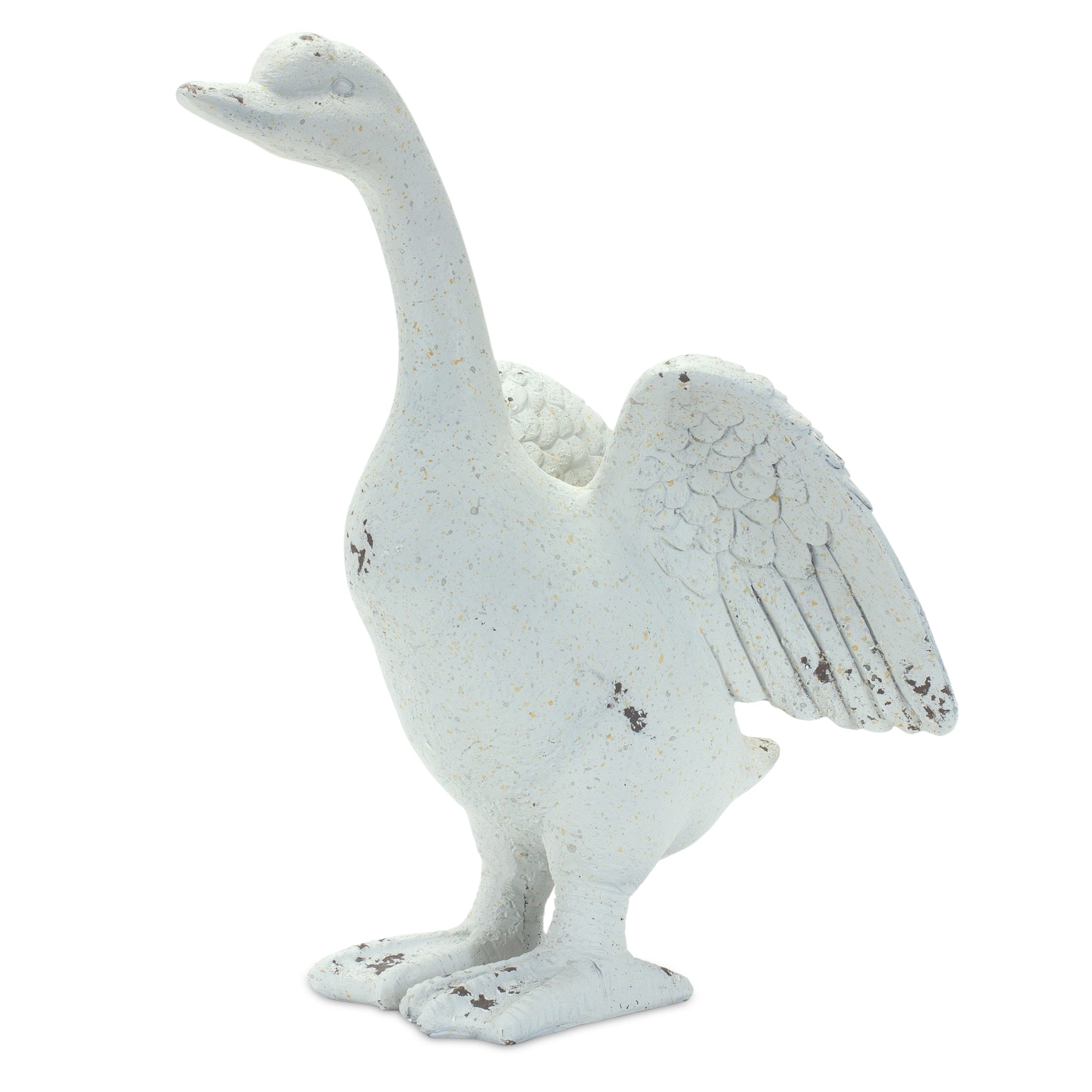 The beautiful set of Standing Duck Figurines is the perfect addition to your farmhouse decor. Featuring two assorted designs, this set is sure to add a touch of nature to your living space. The bright white tones paired with the weathered finish is the perfect combination to create a stunning display. Place the pieces togheter to make a statement, or dipslay them throughout your home to add interest to the rooms., Duck (Set of 2) 11.75"H, 12.25"H Resin