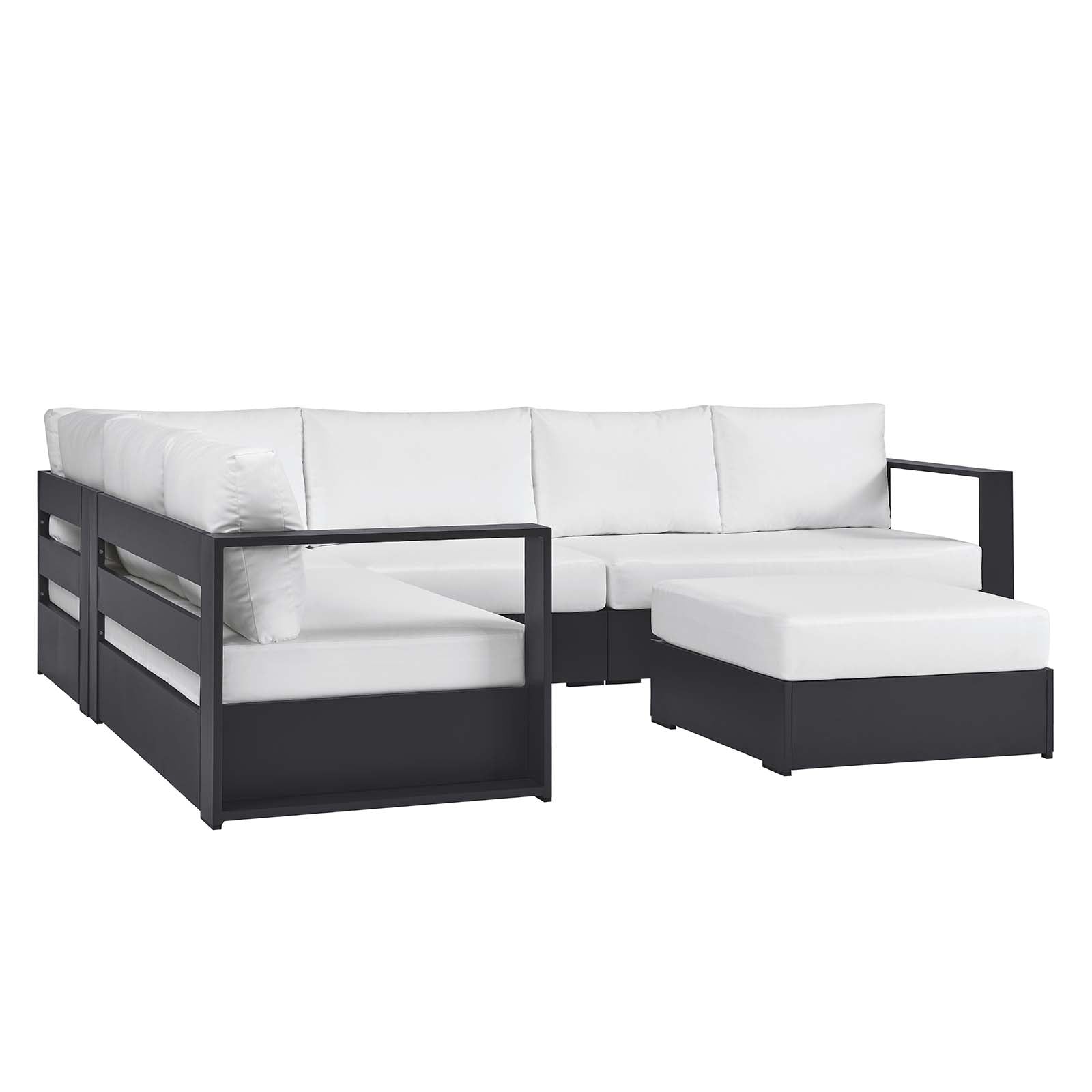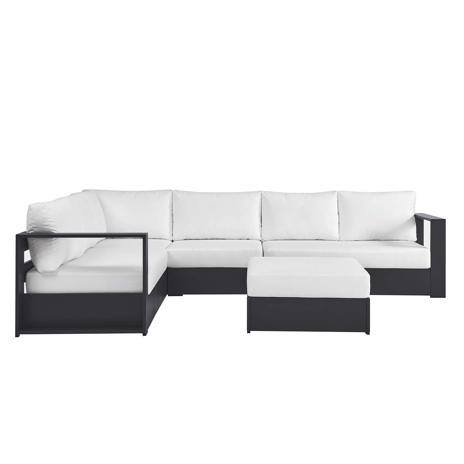 Enliven your alfresco spaces with the Tahoe Aluminum Outdoor Patio 5-Piece Sectional Sofa. This modern sectional sofa is constructed with well-crafted, durable powder-coated aluminum, dispensing contemporary elegance in your outdoor lounge spaces. Its dense foam padding ensures sustained comfort, making it ideal for poolside lounging or as outdoor deck furniture, complete with UV and water-resistant fabric-covered seats and backrests. The cushion covers are removable for easy machine washing. Part of a modular outdoor furniture collection, this sectional sofa offers adaptability and style while entertaining or relaxing. The entire Tahoe aluminum patio furniture set features non-marking foot glides to protect your deck or patio floor and comes with easy-to-follow assembly instructions. Set Includes: 1 Ottoman, (Weight Capacity: 331 lbs.), 1 Armless Patio Chair (Weight Capacity: 331 lbs,), 1 Left-Facing and 1 Right-Facing Loveseat (Weight Capacity: 331 lbs,), 1 Corner Chair (Weight Capacity: 331 lbs.) Set Includes: One - Armless Sofa One - Corner Chair One - Left Facing Loveseat One - Ottoman One - Right Facing Loveseat