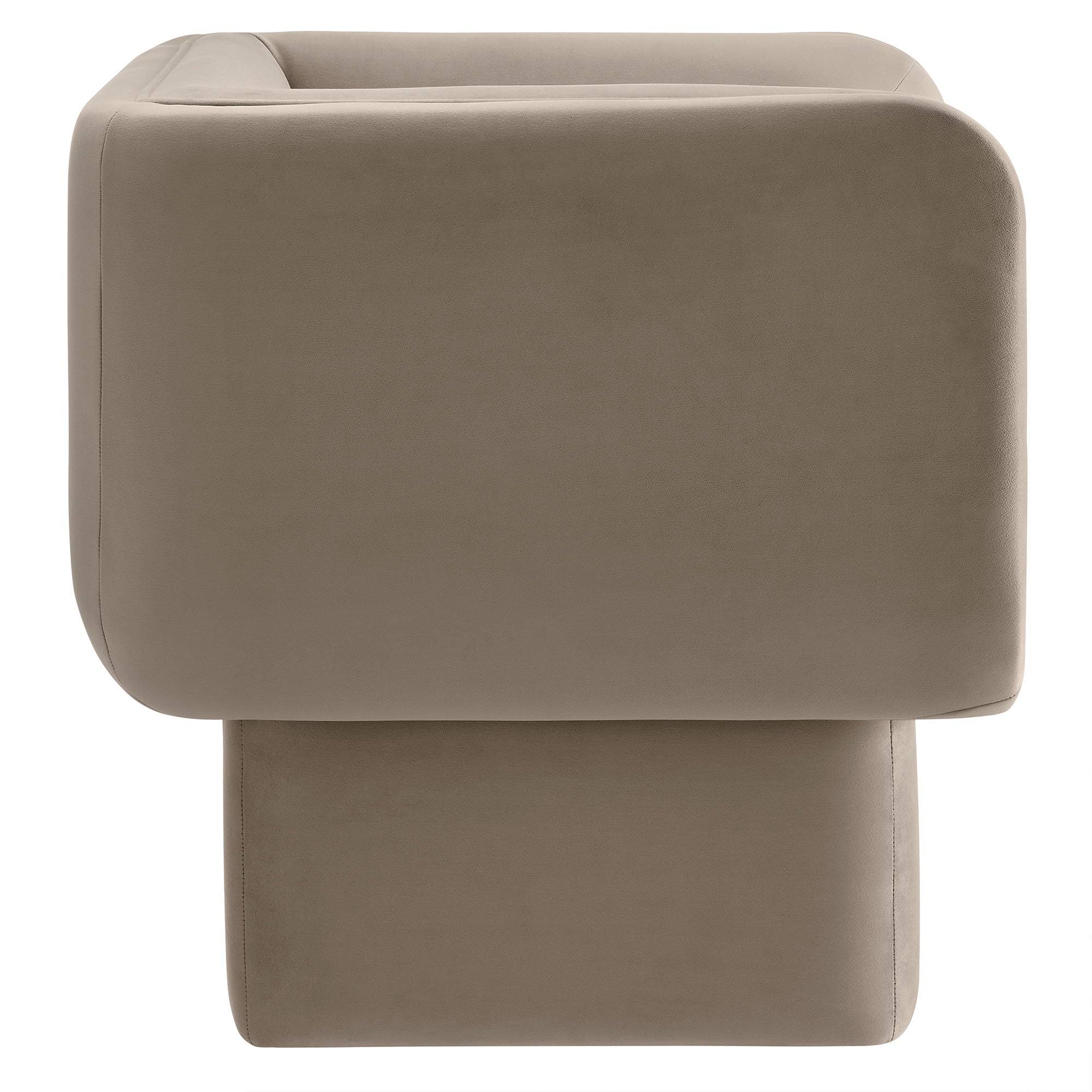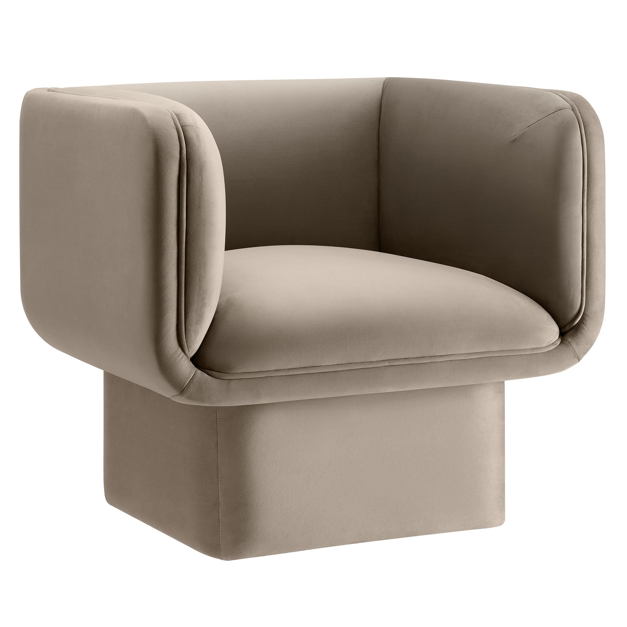Add a touch of contemporary elegance to your home with the Tate Barrel Accent Chair. This wide square armchair, upholstered in luxurious, stain-resistant performance velvet, combines a plush, comfortable feel, making it ideal for daily use. The fixed seat and back cushion on this upholstered side chair offer excellent support, perfect for relaxing or reading, while also maintaining the velvet chairÕs unique square shape over time. With detailed French piping that runs along the arms and back, this club chair brings an artisanal quality to your furniture collection. Built with a sturdy wood frame with plastic foot pads, the Tate Accent Sofa Chair protects your floors, allowing you to move it around easily. Perfect for your living room, bedroom, or office, this sofa chair combines modern style with cozy comfort, creating an inviting spot to unwind. Assembly Required. Weight Capacity: 331 lbs. One - Tate Accent Chair