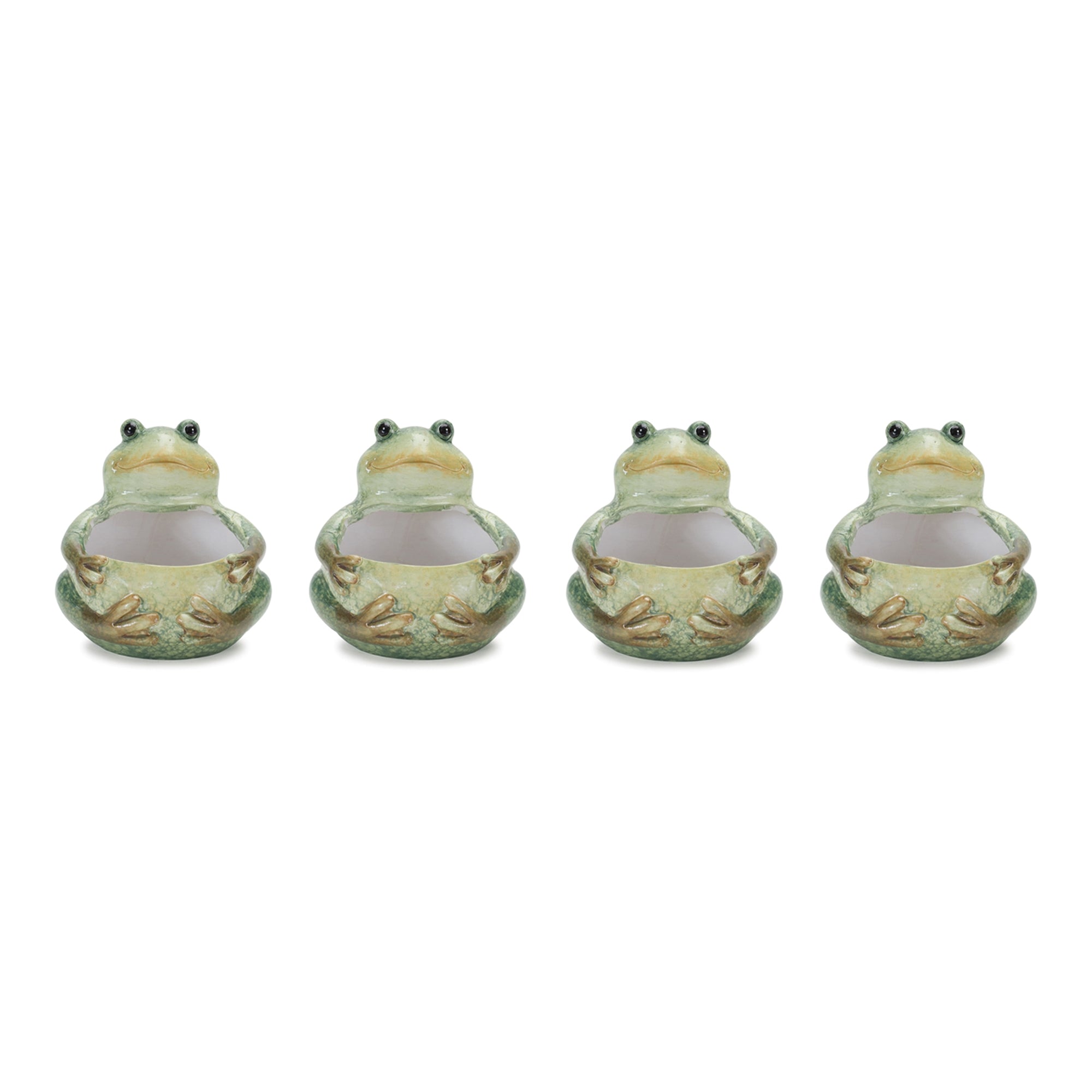Add a whimsical touch to your garden with this set of Terra Cotta Frog Planters. The earthy green and brown tones paired with the adorable frog character design is the perfect combination to create a memorable display. The quality terra cotta composition is sure to endure for seasons to come. Complete your garden spring decor with this set of frog planters!, Frog Planter (Set of 4) 5"H Terra Cotta