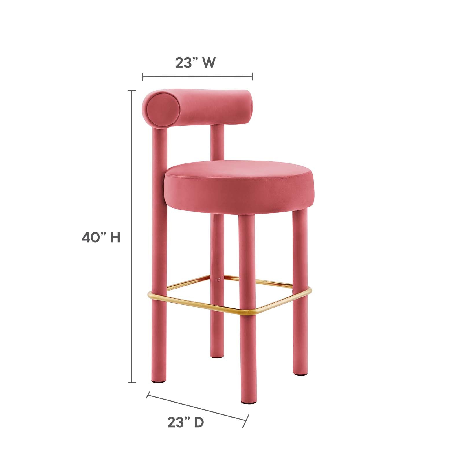 Enhance your dining space with the exquisite Toulouse Performance Velvet Bar Stool. Upholstered in stain-resistant performance velvet fabric, this bar stool exudes modern luxury and glam deco style. The curved bolster pillow backrest, circular seat, and dense foam padding provide unparalleled comfort and unmatched aesthetics. A polished metal stretcher wraps around the four tubular legs to provide function and chic allure to the stylish bar-height stool. With non-marking foot pads to protect your flooring, this performance velvet bar stool adds a touch of sophistication to the dining room or kitchen space. Easy assembly is required. Weight Limit: 330 lbs. Set Includes: One - Bar Stool