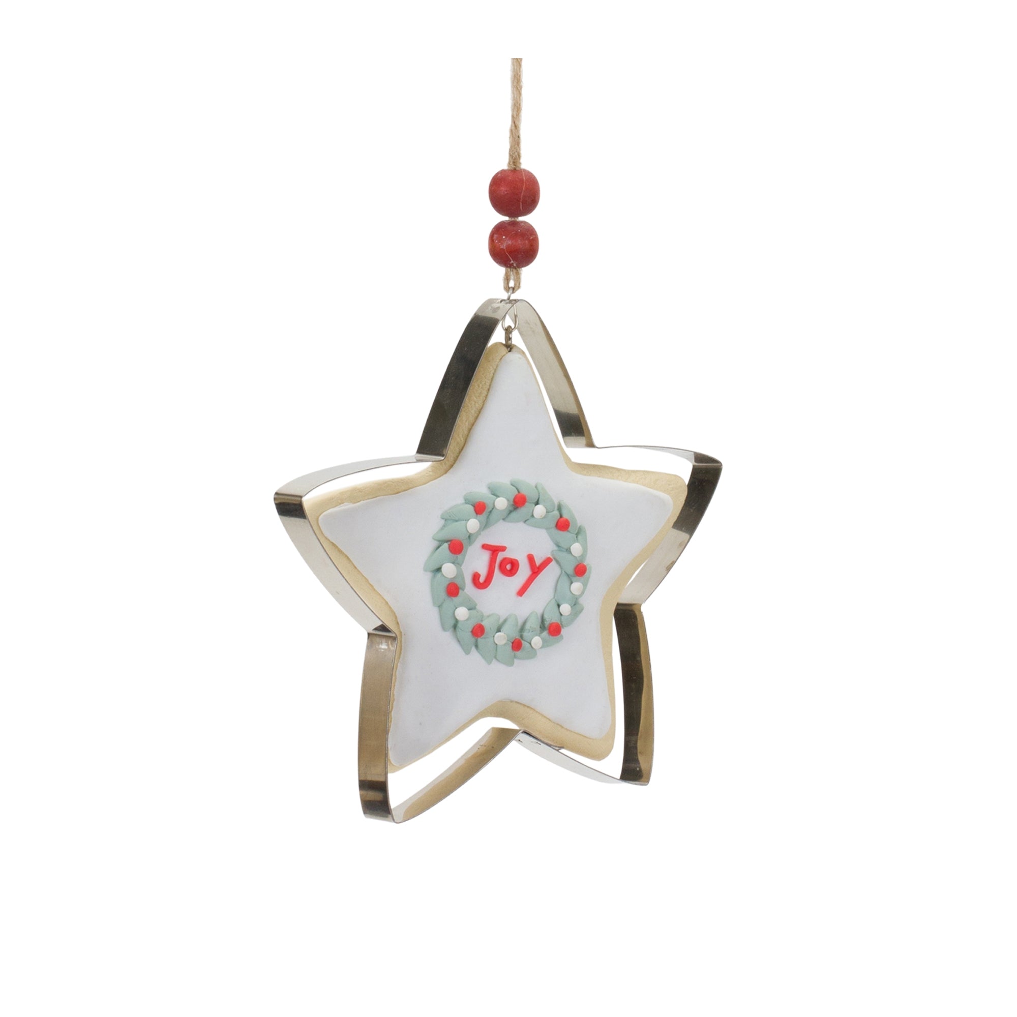 Add a traditional touch to your Christmas Tree with this beautiful set of Star and Tree Cookie Cutter Ornaments. Featuring 12 pieces, this set's festive red and green tones, frosted cookie designs, and wood bead accents are the perfect combination to create a memorable display. The quality metal and clay dough composition with jute string hanger is sure to endure for seasons to come. Whether you're adding a touch of cheer to your home or gifting to a loved one, these ornaments will definitely bring smiles to your home. , Cookie and Cookie Cutter Ornament (Set of 12) 4.5"H, 6.5"H Clay Dough/Metal