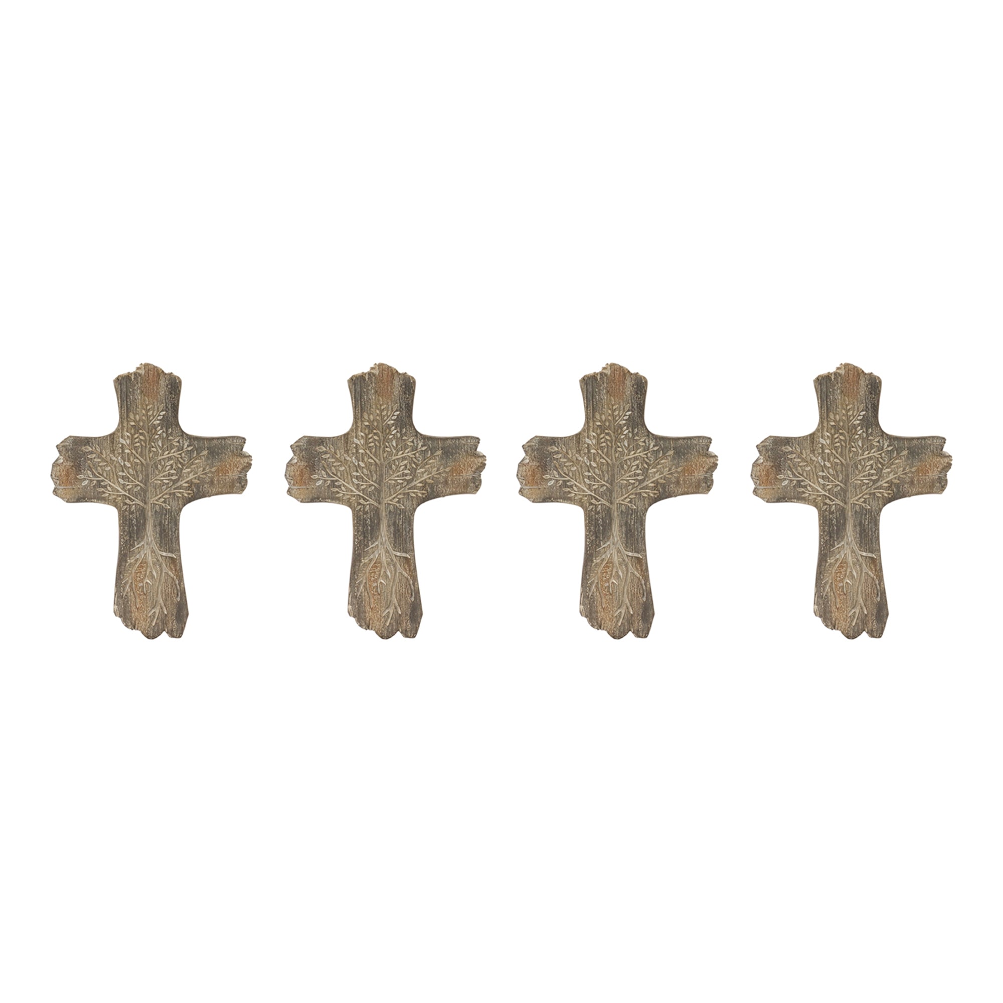 Add a touch of spirituality to your home with this set of Tree of Life Cross Decor. Crafted from polyresin with a rustic wood grain finish, these elegant pieces features an etched tree of life accent for a unique and inspiring look that is sure to bring a sense of peace and comfort to your space. Make a meaningful statement with the Tree of Life Cross Decor today!, Cross (Set of 4) 10.25"H Resin