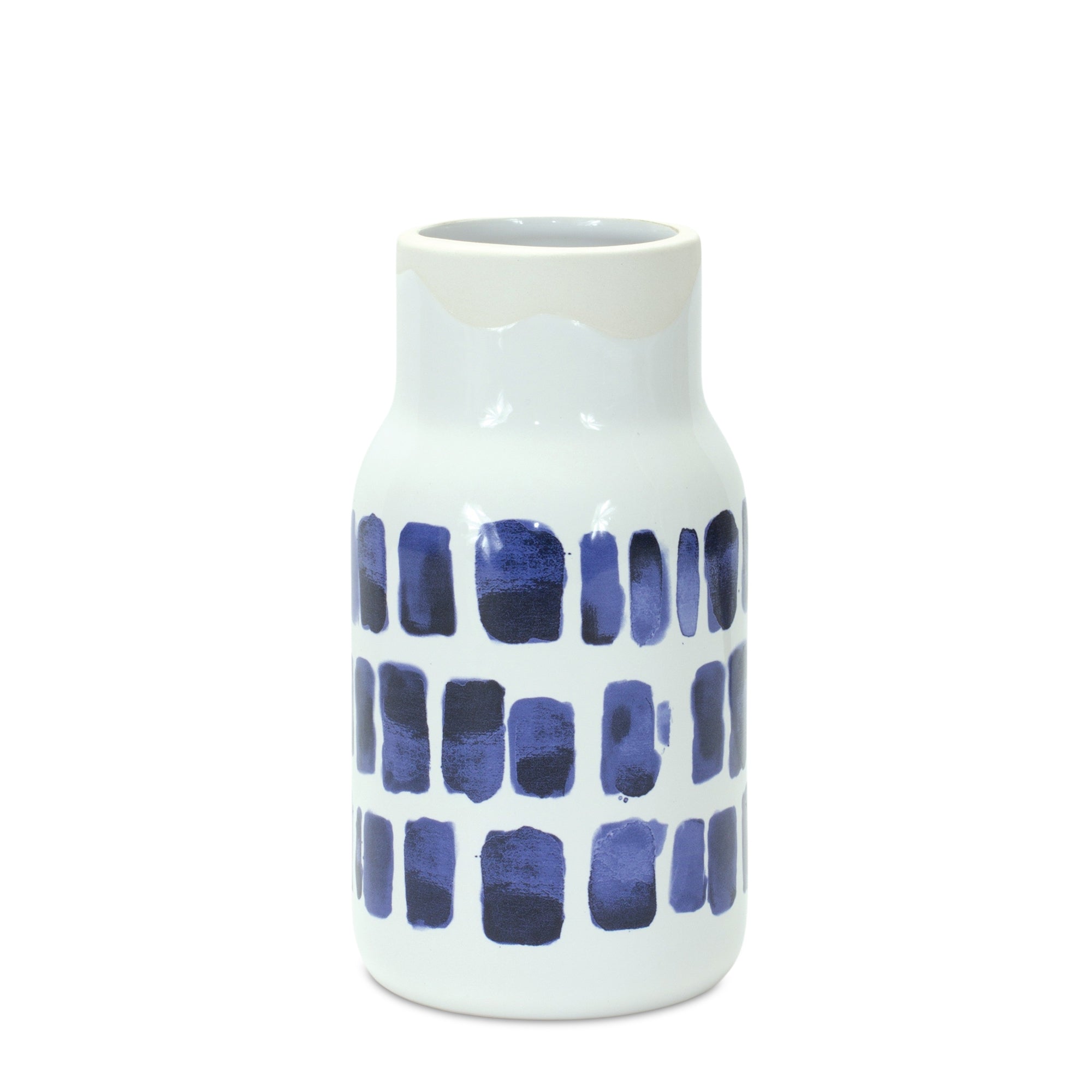 Enhance your home decor with this beautiful set of Ceramic Vases. Featuring two assorted sizes, the cool blue abstact pattern paired with the bright white finish makes it a great addition to any style of decor. The quality glass composition is sure to last for seasons to come. Complete the look by adding a bunch of dried florals or fresh-picked garden stems to the vase. , Vase (Set of 2) 4.25"D x 8"H, 4.25"D x 10"H Ceramic
