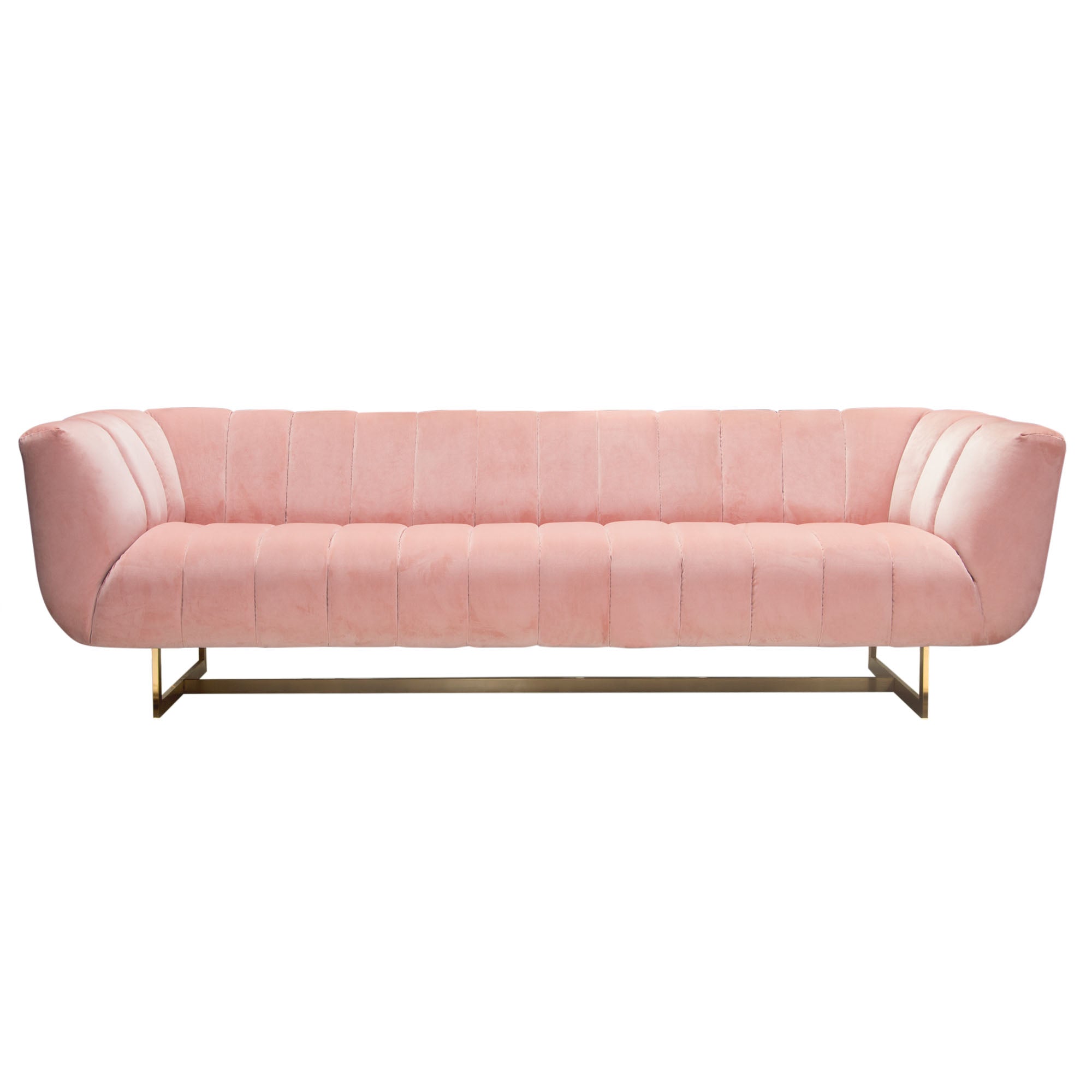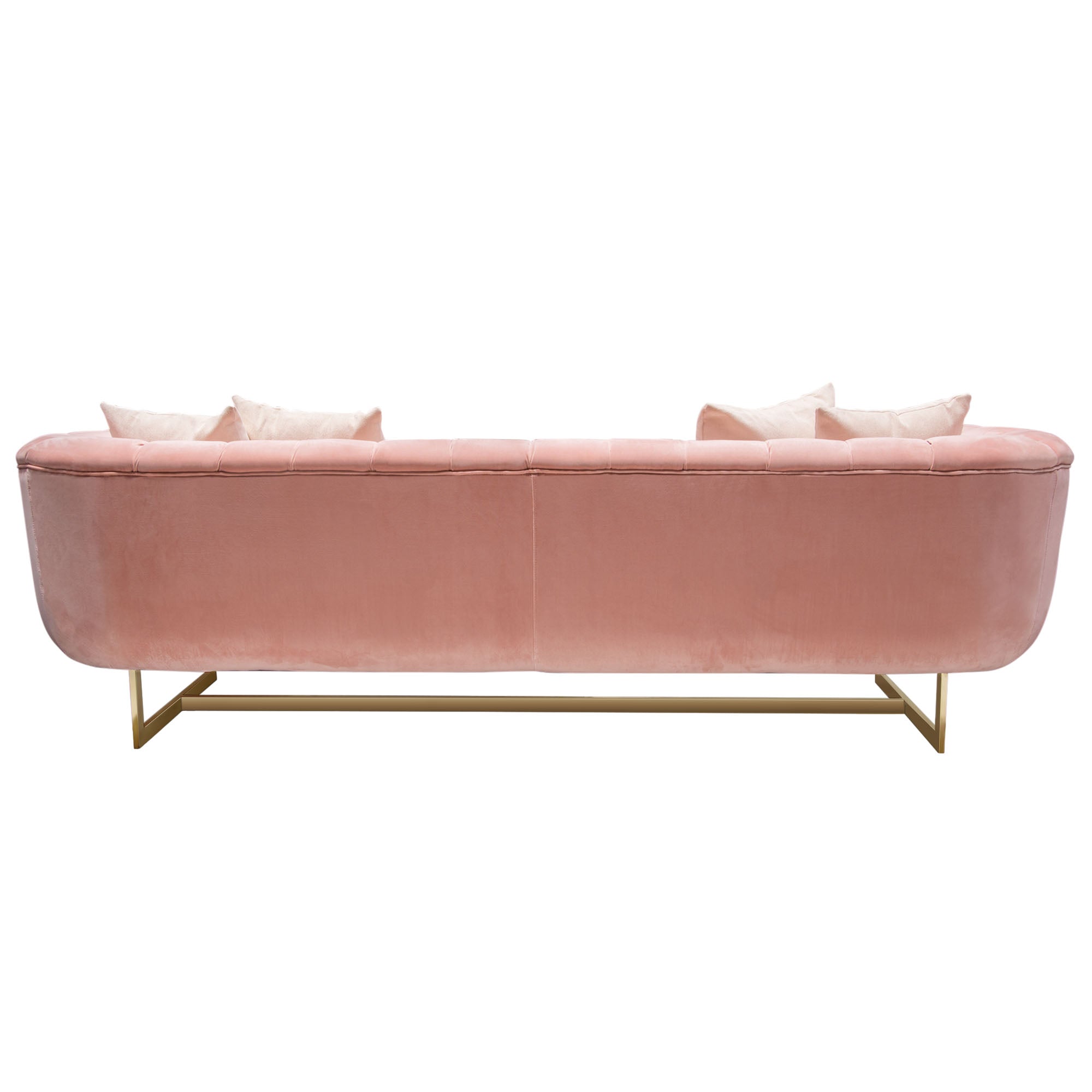 Venus Sofa in Blush Pink Velvet w/ Contrasting Pillows & Gold Finished Metal Base by Diamond Sofa