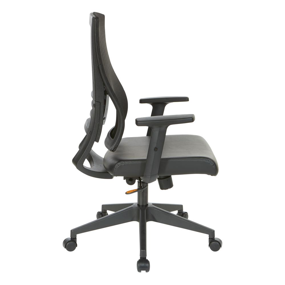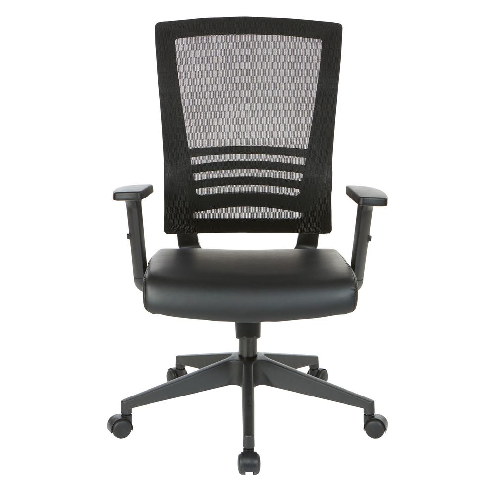 Vertical Mesh Back Chair in Black Frame with Black Faux Leather, EM60930-U6