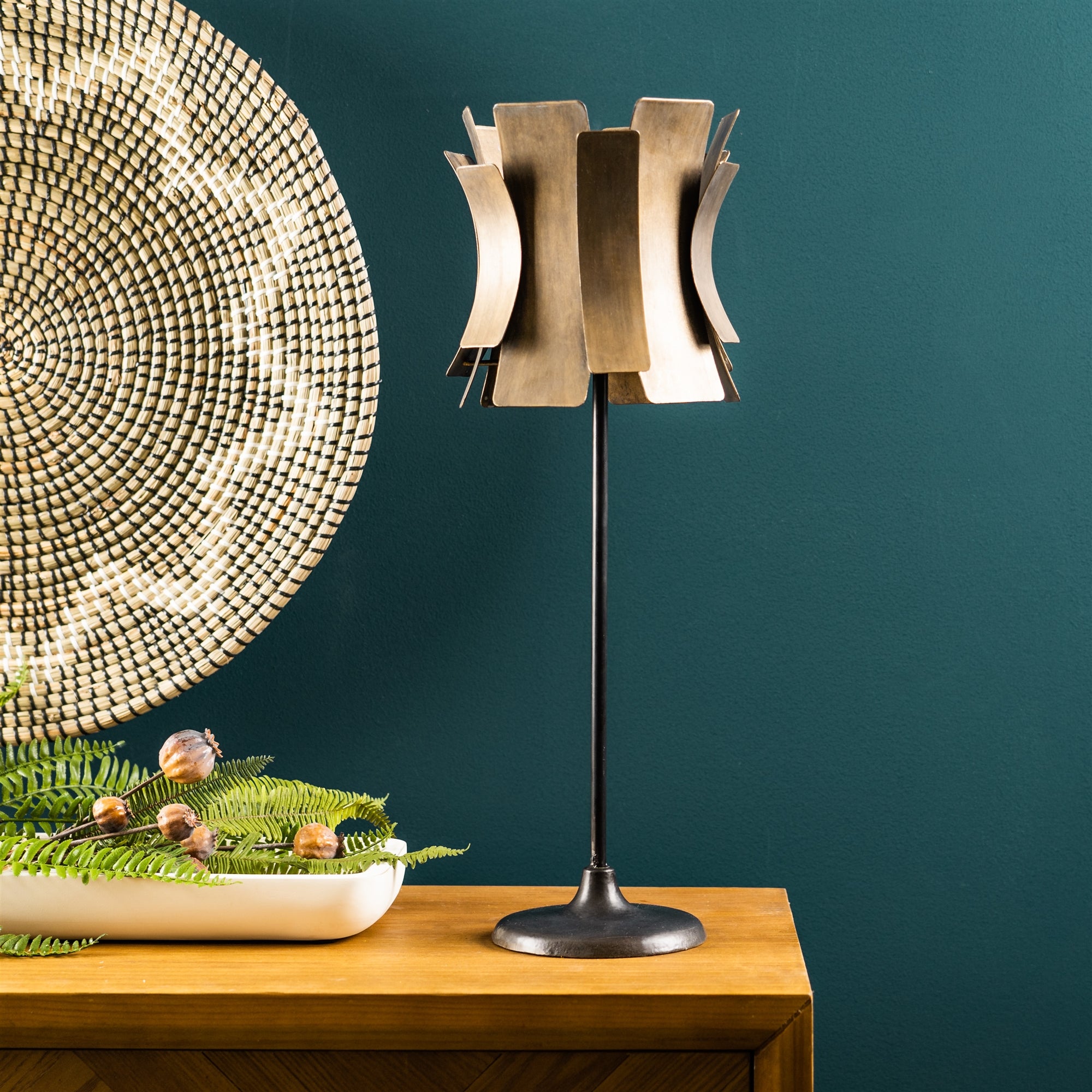 Vintage Iron Candle Holder with Glass Insert 22"H
