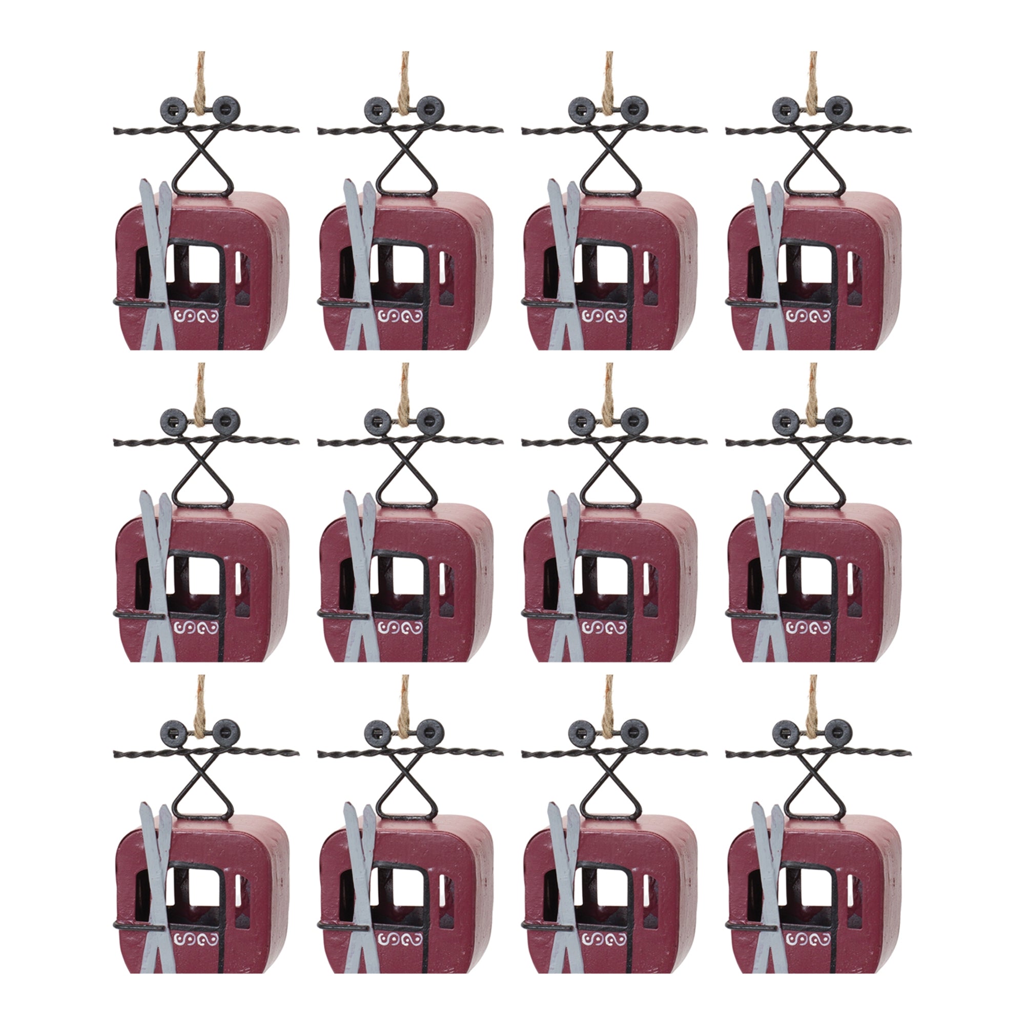 Add a vintage touch to your Christmas tree with this set of Ski Gondola Ornaments. Whether you're adding a touch of cheer to your tree or gifting to a loved one, these ornaments will definitely bring smiles to your home. With festive red and white tones, distressed finish, and a quality iron metal construction, these joyful decorations are sure to last for years to come! Add a little something special this holiday season with the Ski Gondola Ornaments., Gondola Ornament (Set of 12) 4.5"H Metal
