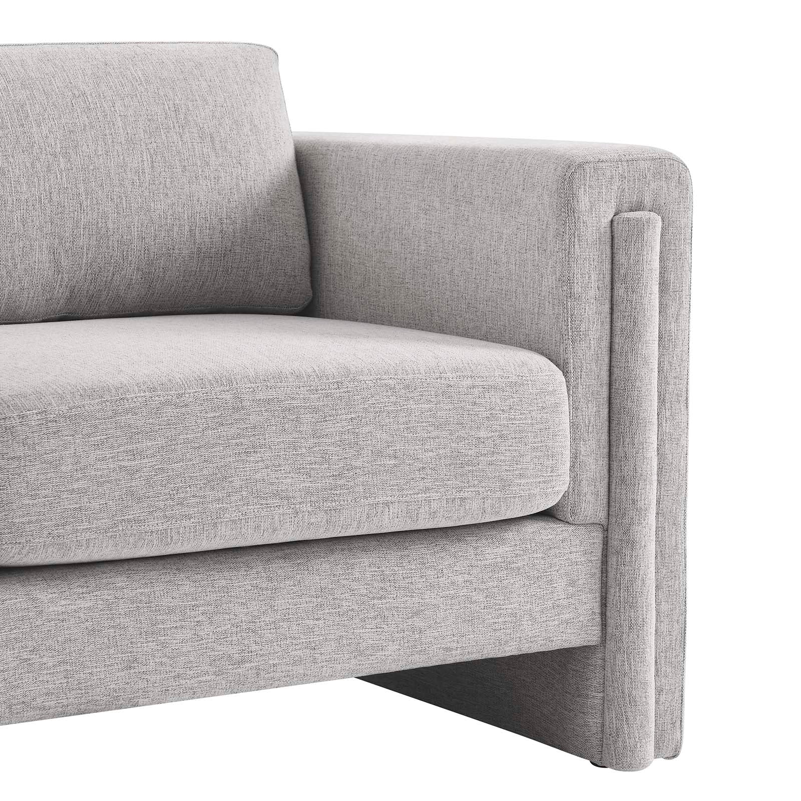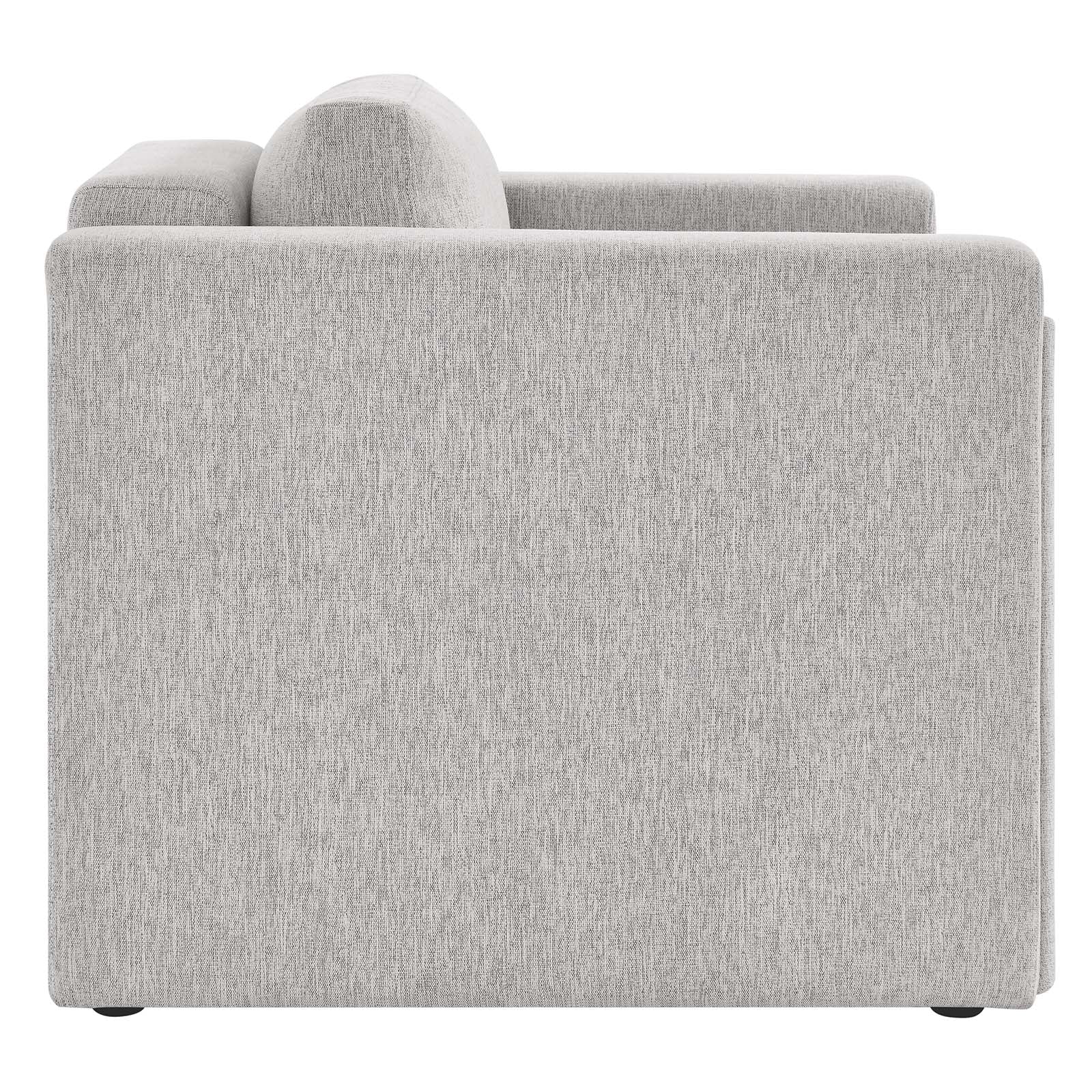 Indulge in the epitome of modern luxury and sophistication with the Visible Accent Armchair. Crafted with a sturdy wood and plywood frame, this armchair exudes modern elegance with its sleek lines and tailored silhouette. The adjustable non-marking foot pads protect your flooring while providing sturdy stability. Sink into cozy comfort with the dense foam padding, individualized pocket coil support, and stain-resistant heathered weave polyester fabric upholstery. The cushions and cushion covers are removable. Enjoy unmatched support with the pocket coil springs that offer a premium seating experience. Assembly is required with easy to follow assembly instructions. Weight Capacity: 330 lbs. Set Includes: One - Armchair