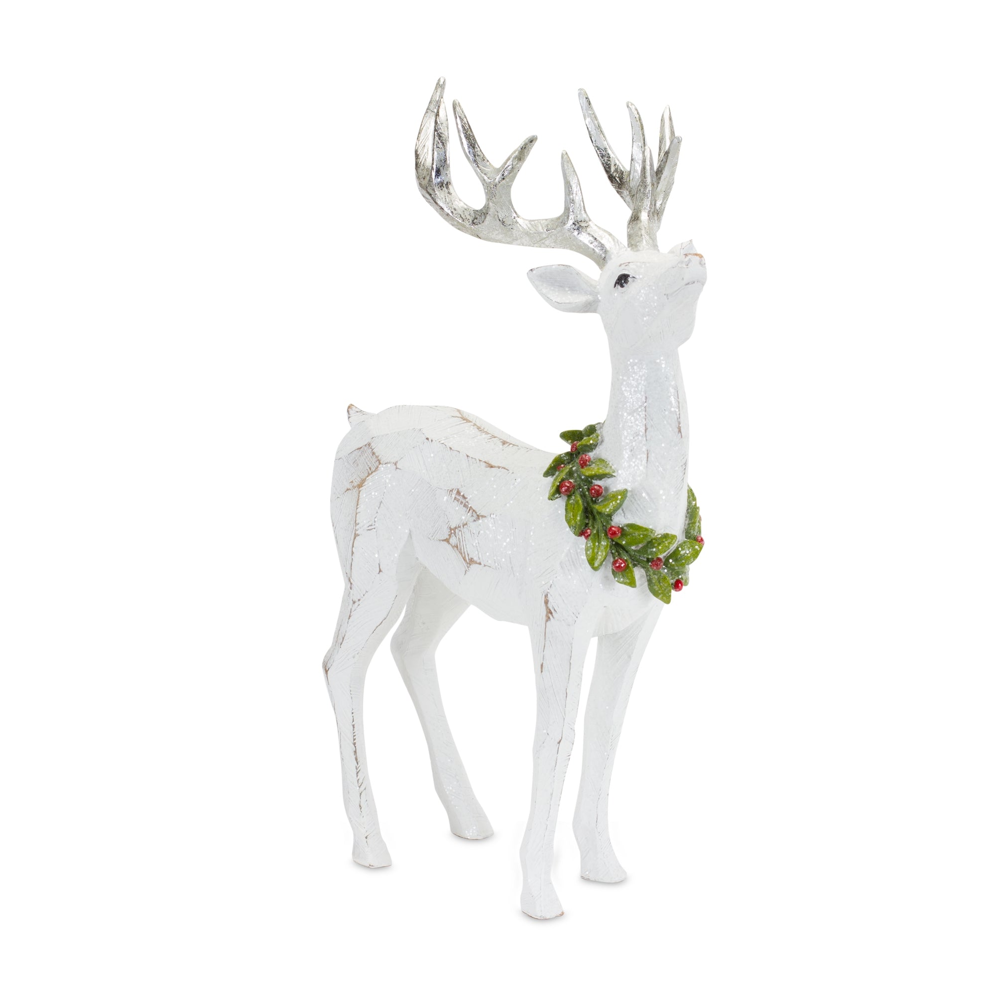 White Deer Figurine with Silver Antler and Wreath Accent (Set of 2)
