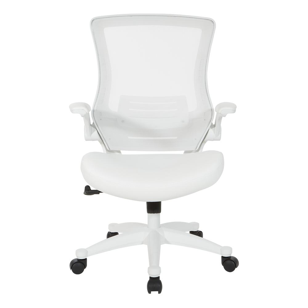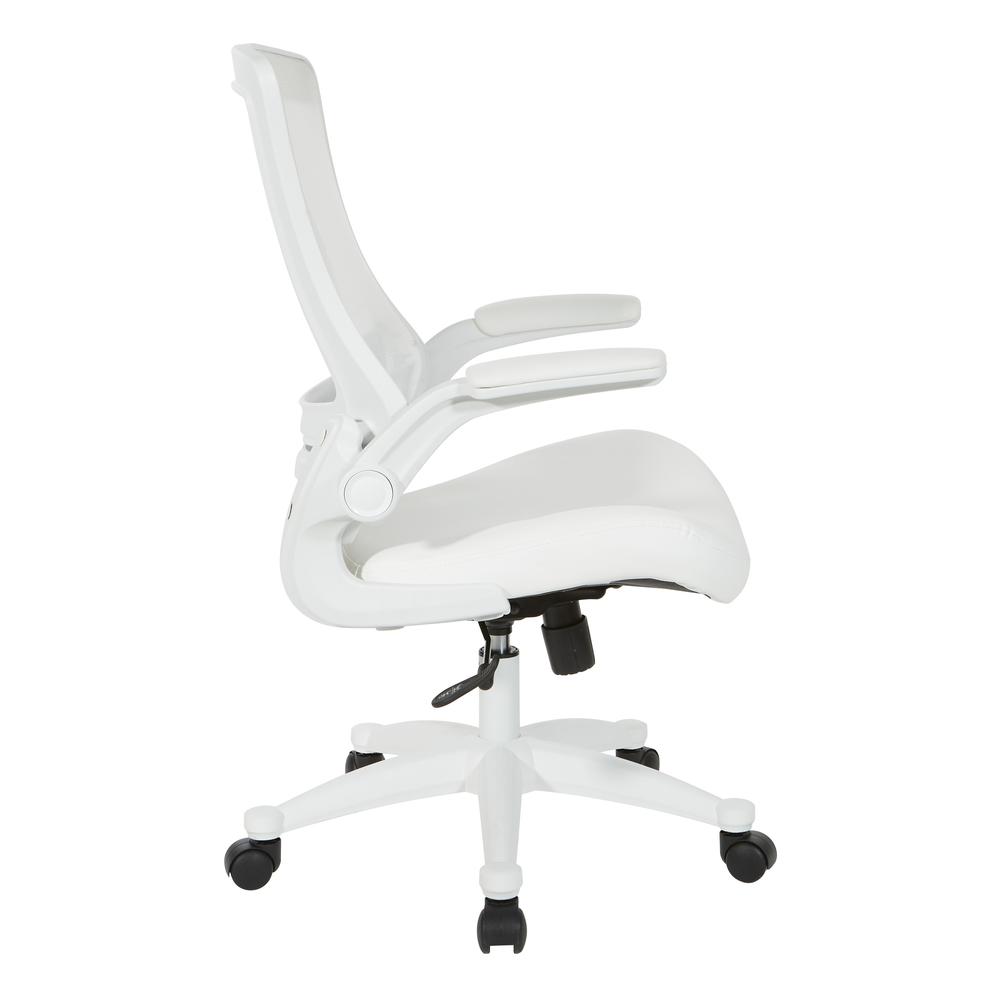 Everyone needs a smart, stylish chair to support them throughout the day and the Screen Back Manager's Chair by Work Smart¨ with faux leather seat and padded flip arms with silver accents is sure to please. This high-style look includes a supple, padded faux leather seat and adjustable padded flip arms for hours of plush comfort. A breathable screen back with built-in lumbar support gives this chair its modern attitude while keeping you cool throughout the day. One-touch pneumatic seat height adjustment, locking tilt control and adjustable tilt tension ensure youÕre comfortable and in an ergonomic position for maximum productivity. This managerÕs chair also features an attractive ultra-modern white base with dual-wheel carpet casters that ensure effortless mobility.