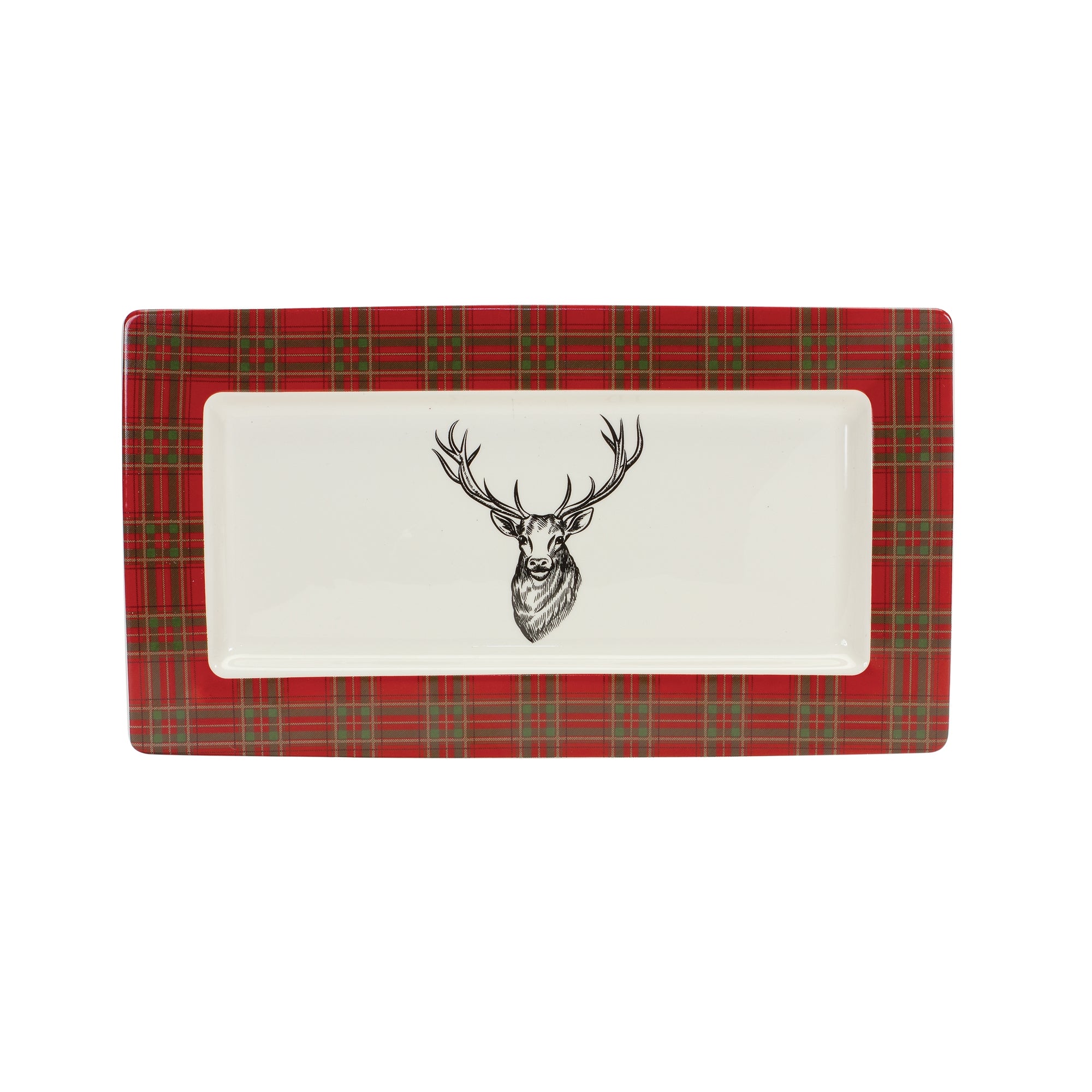 Ring in the holiday season with this beautiful set of Ceramic Plaid Deer Platters. Featuring two pieces, this set is a great addition to your traditional or rustic Christmas home decor. The elegant ceramic composition paired with the traditional plaid design creates a stunning and timeless display. Perfect for serving guests on Christmas Day., Plaid and Deer Platter (Set of 2) 13.25"L x 7.5"W x .75"H Ceramic