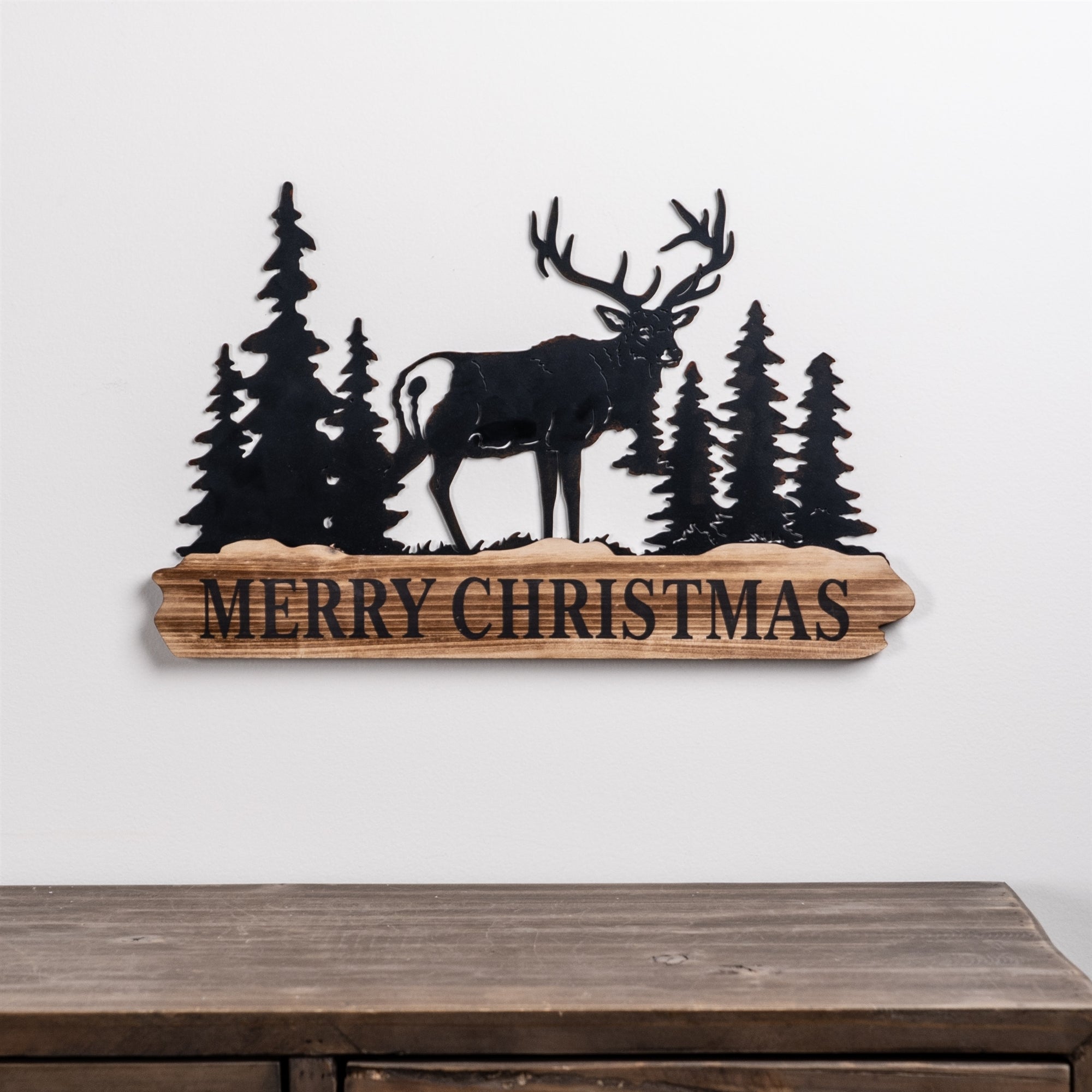 Add a touch of woodland nature to your home with this beautiful set of Woodland Deer Merry Christmas Signs. Featuring two pieces, this set's cut-out metal tree and deer design paired with the natural wood sign background is the perfect combination to create a stunning Christmas display. The quality metal and wood composition is sure to last for seasons to come., Merry Christmas Sign (Set of 2) 18"L x 11"H Metal/Wood